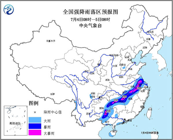 7月4日,我國(guó)南方地區(qū)持續(xù)強(qiáng)降水天氣短暫停歇,抗洪搶險(xiǎn)工作迎來(lái)“黃金大半天”。但是搶險(xiǎn)前景仍不容樂觀。據(jù)中央氣象臺(tái)消息,預(yù)計(jì)4日08時(shí)至5日08時(shí),安徽中南部、江蘇中南部、湖北東南部、江西西北部、湖南中部和東北部、貴州東南部、廣西西北部和南部沿海等地有暴雨,其中,安徽和江蘇兩省沿江地區(qū)、湖南東北部及中部、廣西西北部等地的部分地區(qū)有大暴雨(100~200毫米);上述地區(qū)伴有短時(shí)強(qiáng)降水和雷暴大風(fēng)等強(qiáng)對(duì)流天氣,最大小時(shí)雨強(qiáng)60~80毫米。南方大部地區(qū)仍然處于暴雨紅色預(yù)警中。