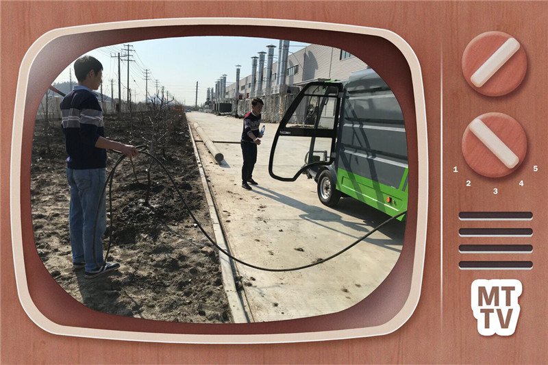植樹活動現(xiàn)場一派熱火朝天的景象,有的揮鍬、有的扶樹、有的培土、有的澆水,個個干勁十足。連公司的高壓沖洗車Q8也不甘示弱,沖到一線來澆水。